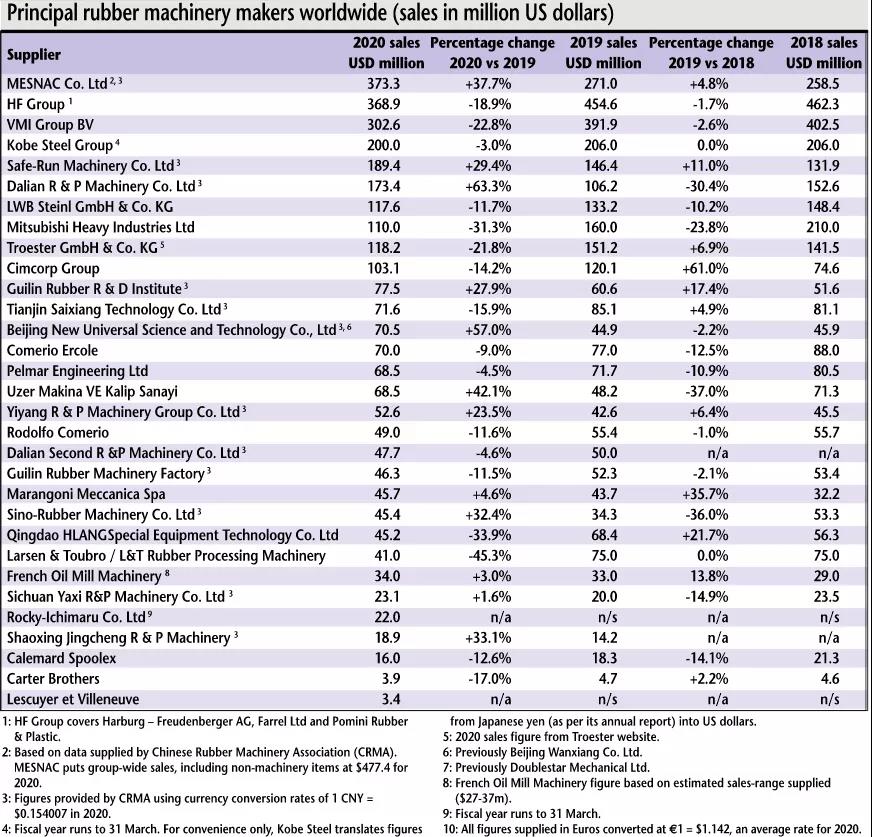 最新出版的歐洲橡膠雜志(European Rubber Journal) 5/6月刊更新了2020年全球橡膠機(jī)械行業(yè)企業(yè)的銷售收入排名,軟控(MESNAC)位居第一。