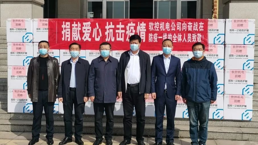 3月19日與26日,青島軟控機電工程有限公司共向膠東街道捐贈2000套防護服。膠東街道黨工委副書記、辦事處主任李明昔,膠東街道人大主任張坤德、黨工委副書記趙方毅,軟控股份副總裁、軟控機電工程有限公司總經理武守濤,軟控工會主席周丹丹等出席捐贈儀式。